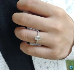 2.30 TCW Emerald Cut East To West Moissanite Engagement Ring, Pave Setting Anniversary Gift Ring