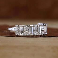 Baguette And Round Cut Lab Grown Diamond Half Eternity Wedding Band