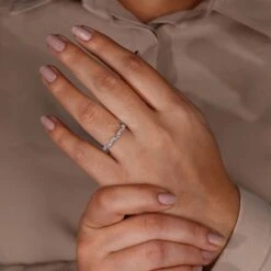 Zig Zag Diamond Wedding Band, Marquise And Round Lab Grown Diamond