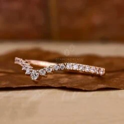 Diamond Chevron Band, Round Cut Diamond Half Eternity Wedding Band