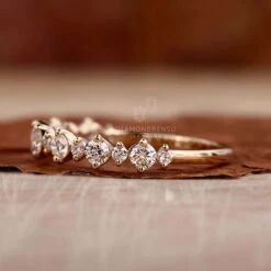 Minimalist Round Lab Grown Diamond Wedding Band, Half Eternity Band