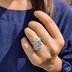 Unique Vintage Moissanite Engagement Ring, Cyan Blue Pear Cut Antique Halo Moissanite Ring