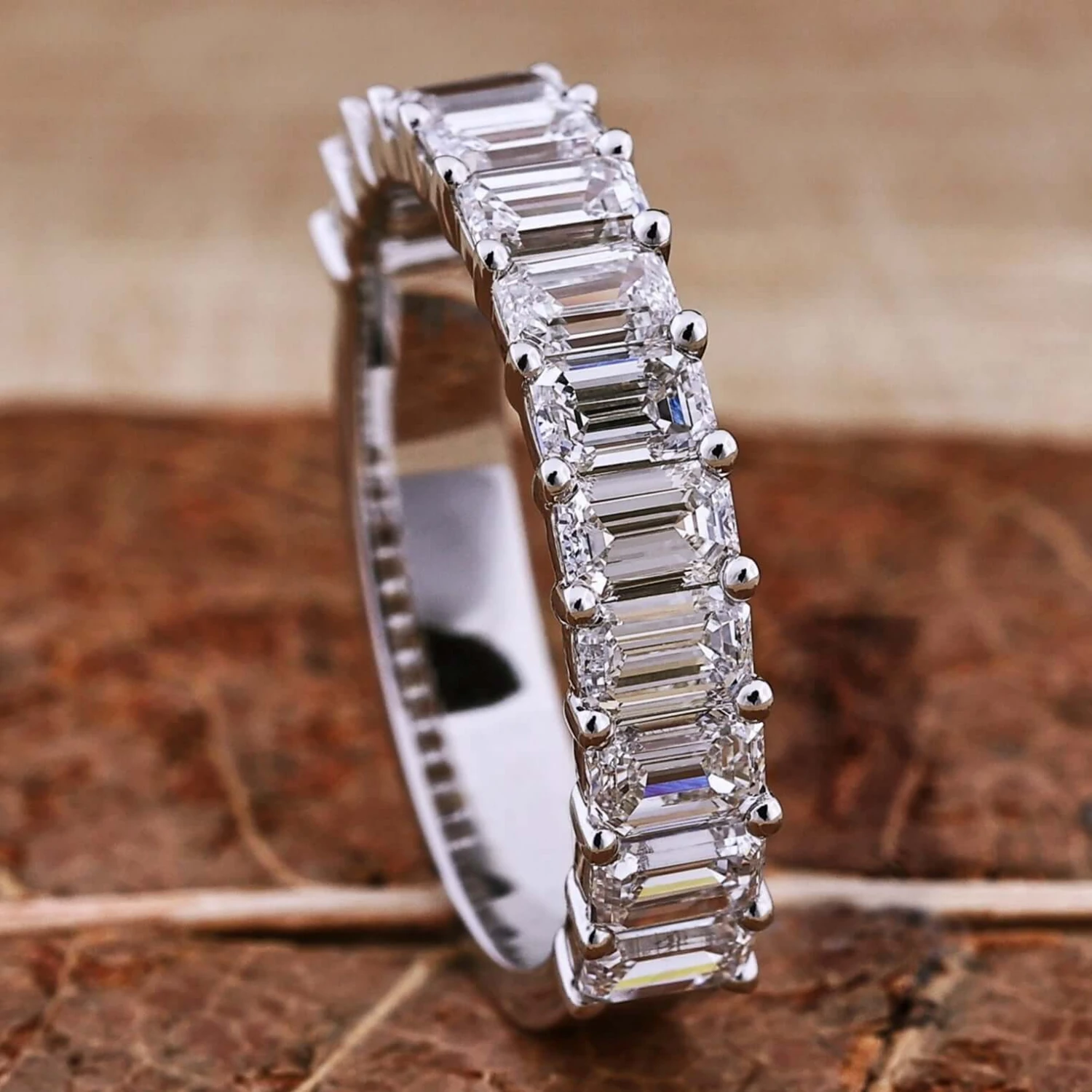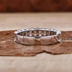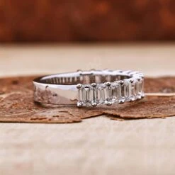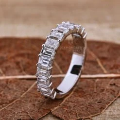 The lab grown half eternity wedding band is the most famous among every jewelry lover. This minimal emerald cut lab grown diamond half eternity wedding band gives a new look to your finger and also completes your outlook. The lab diamond band is the best wedding ring for a Valentine’s Day surprise or anniversary gift.