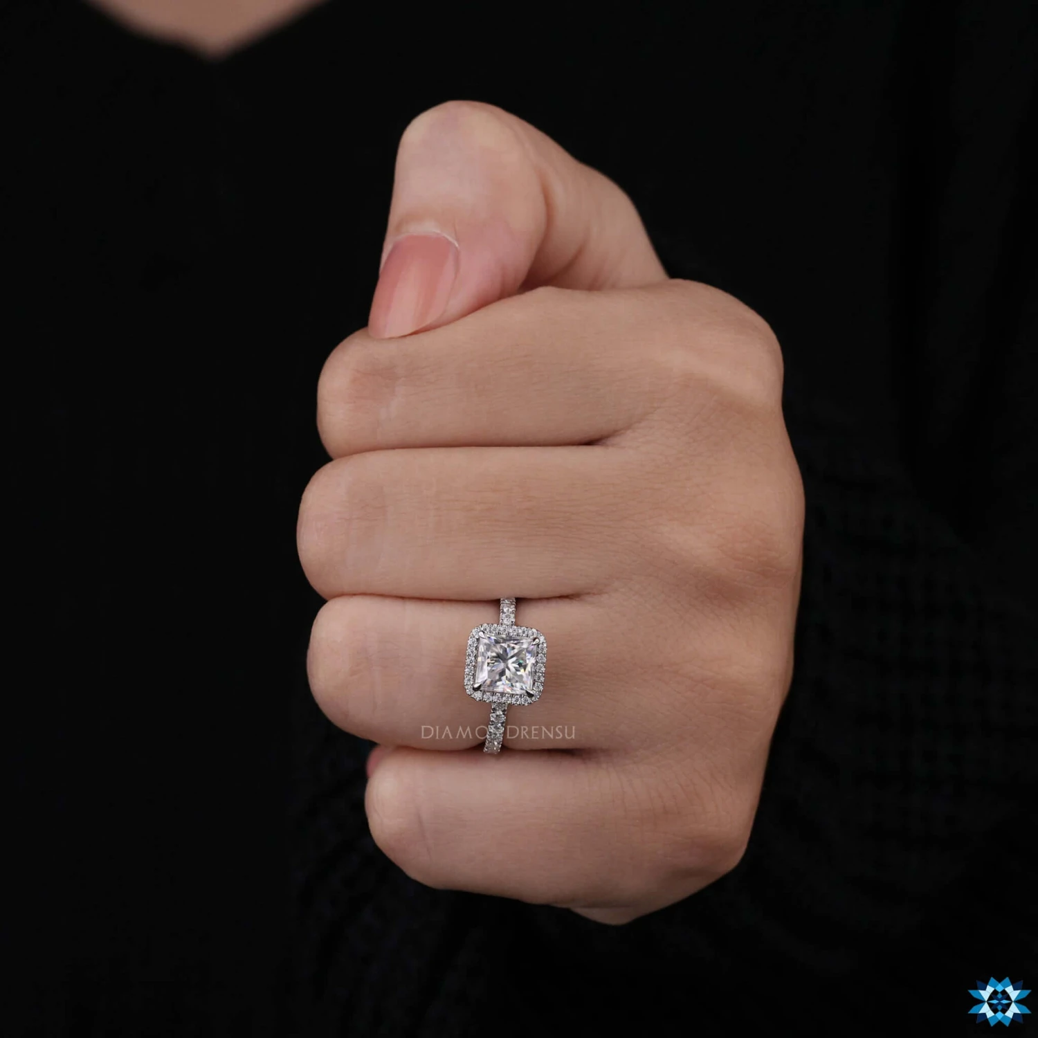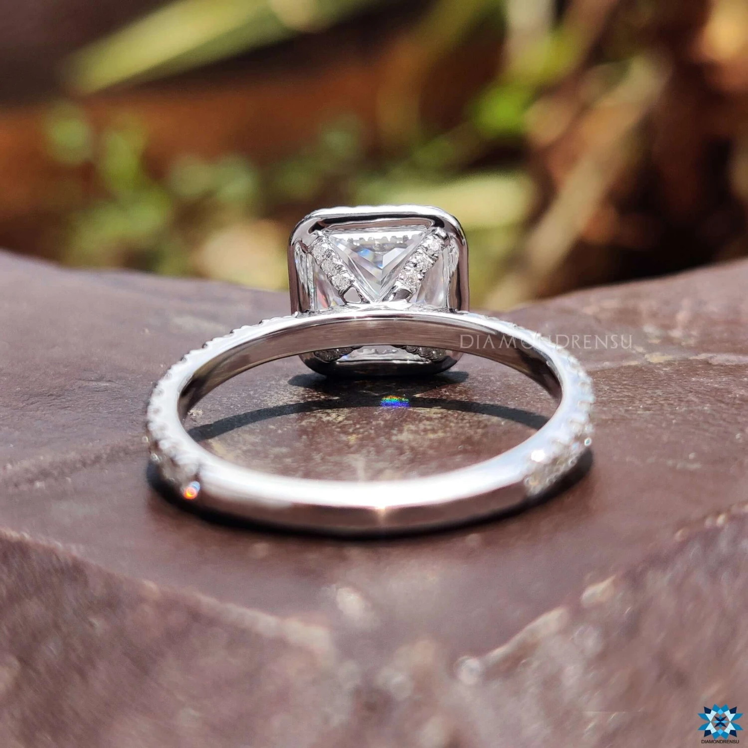 The beautiful princess cut halo engagement ring will be the best and perfect choice for your princess. Select this listed moissanite halo engagement ring as the center attraction of your engagement and make it your precious engagement ring.Â
