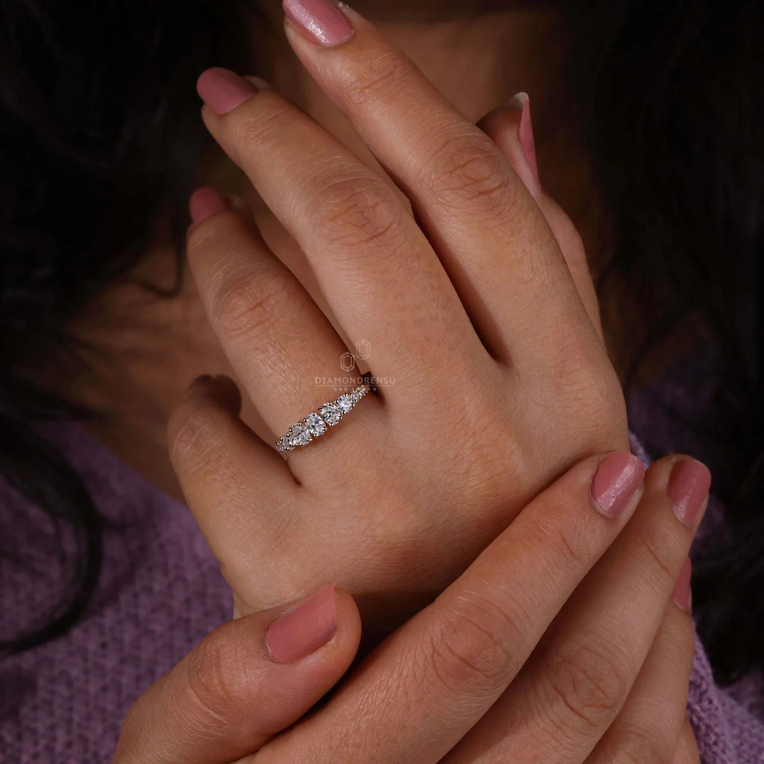 Sparkle away on any special day with Diamondrensu’s lab grown diamond wedding ring. This elegant oval and round cut lab created diamond eternity band are ideal for engagements, weddings, or presents. We know you dream of the perfect celebration, so this eternity wedding band is nothing short of perfect.