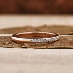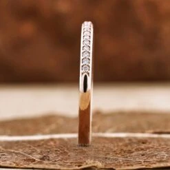 This listed lab grown diamond band comes with the tiny 1.0 mm round cut diamond set on the one-fourth part of the shank. The most important thing about this band is that you can wear this beauty alone and also stack it with another engagement ring.