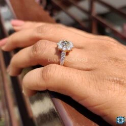 Elegant cluster halo engagement ring for her. Elegant and classic moissanite halo engagement ring appears larger on your finger to the wearer. Everyone’s eyes can’t stop watching the beauty of this sparkling beauty. Everyone’s eyes can’t stop watching the beauty of this sparkling beauty.