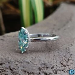 Marquise cut moissanite has one of the largest crown surface areas of any moissanite shape. The marquise cut moissanite’s elongated shape makes the finger of the wearer appear longer and slimmer. Anyone’s eyes can’t stop to see the beauty of cyan blue marquise moissanite.