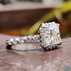This moissanite halo engagement ring is perfect for your loved one. Princess cut moissanite engagement ring is the best engagement ring to wear at traditional functions, cocktail parties, and other occasions. This moissanite halo engagement ring is a perfect wedding anniversary gift for her. The dazzling moissanite engagement ring looks ideal through its shiny and unique floating bubble prong design.