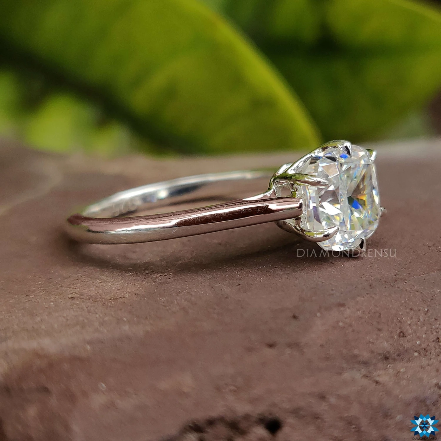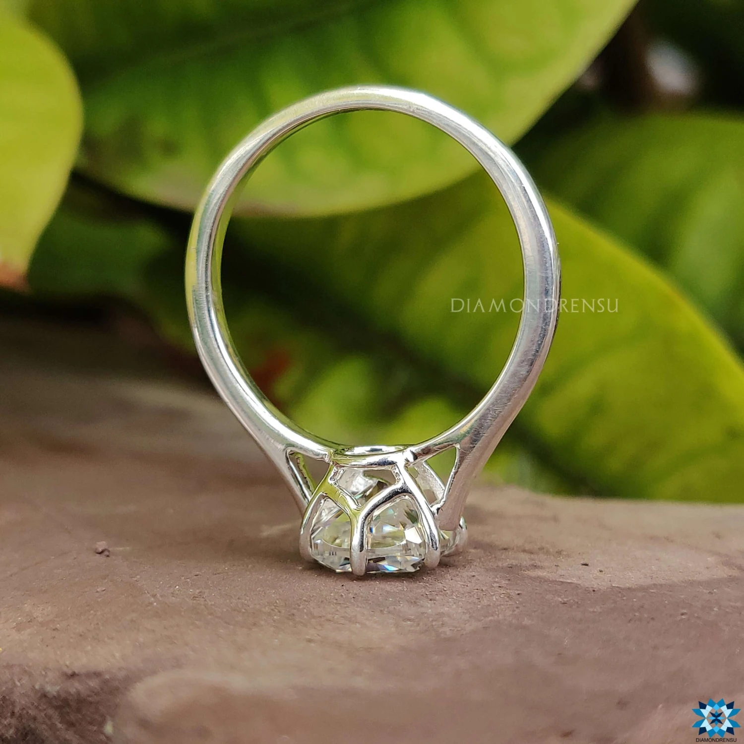 Moissanite cushion cut is has a square shape with rounded cut corners from above to below. The cushion cut moissanite solitaire engagement ring is the perfect Christmas gift for her. Moissanite solitaire ring is the common and trending design among this during the wedding season.