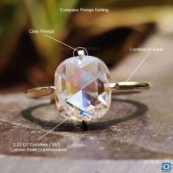 If you are searching for a unique yet minimal design, then this listed rose cut moissanite engagement ring is the one for you. This ring will give a unique shape but in a more suitable fashion. The cushion rose cut moissanite engagement ring is perfect for everyday wear.