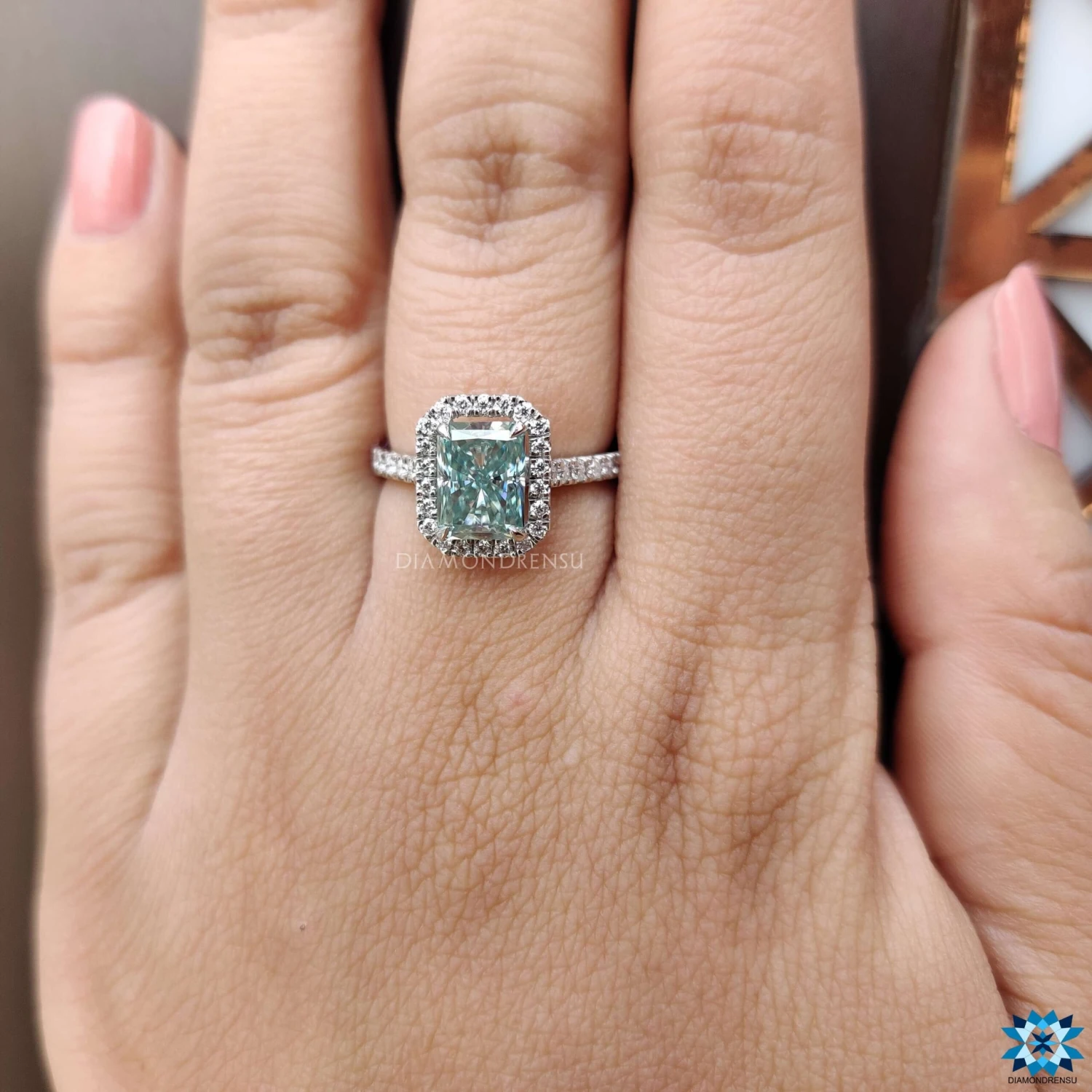 SKU: ZGLHB 1719017760 Category: Halo Rings Tags: $200 - $299, 000MOSO, 1.00 - 1.99 CT, 20%, Delivery_timeline, Diamondrensu, Discount_15_SUMMERSALE, Dispatch_7-9_deliver_7-9, Fancy Color, Faqs-main-2-92-ct-emerald-cut-solitaire-moissanite-engagement-ring, Halo, Hidden Halo, Light Cyan Blue, Moissanite, Moissanite Ring, MRF, Pave, Personalization-enabled, Radiant, RG, Ring, VVS, White Gold, Women_ring