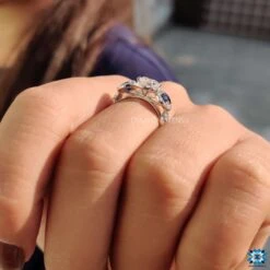 Be the first to review “2.13 TCW Round Cut With Blue Sapphire Three Stones Engagement Ring” Cancel reply