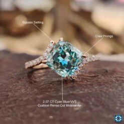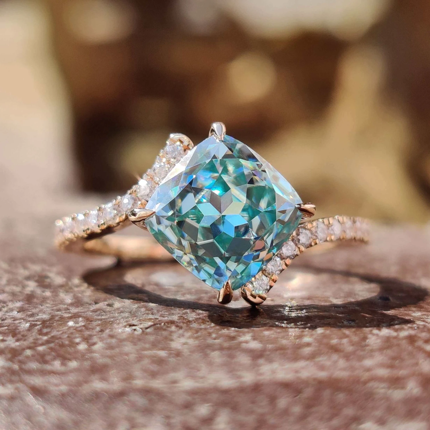 Be the first to review “2.26 TCW Cyan Blue Cushion Rensu Cut Bypass Pave Moissanite Engagement Ring” Cancel reply