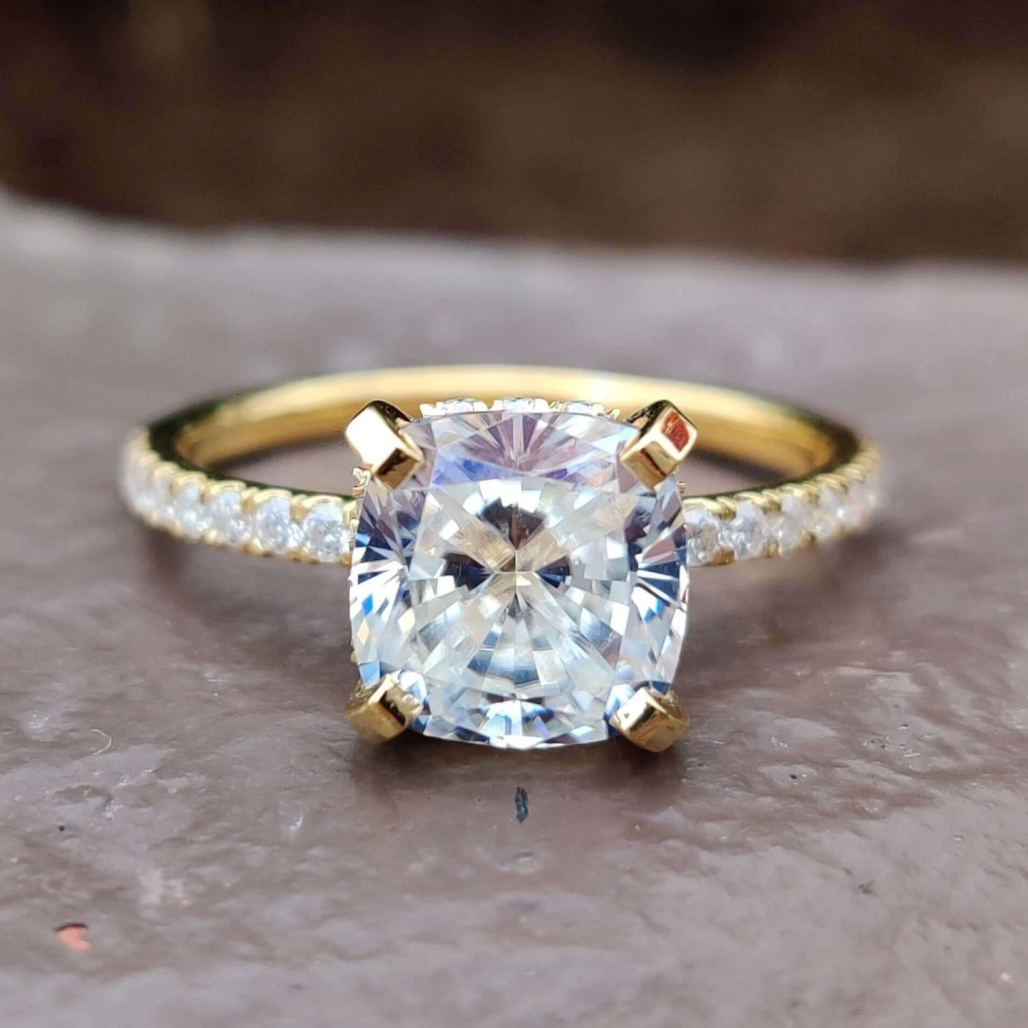 SKU: ZGLHB 1719017995 Category: Pave Rings Tags: $300 - $399, 000MOSO, 2.00 - 2.99 CT, 20%, Colorless, Cushion, Delivery_timeline, Diamondrensu, Discount_15_SUMMERSALE, Dispatch_7-9_deliver_7-9, Faqs-main-2-92-ct-emerald-cut-solitaire-moissanite-engagement-ring, Featured-collection, Hidden Halo, Moissanite, Moissanite Ring, MRP, Pave, Personalization-enabled, RG, Ring, VVS, Women_ring, Yellow Gold