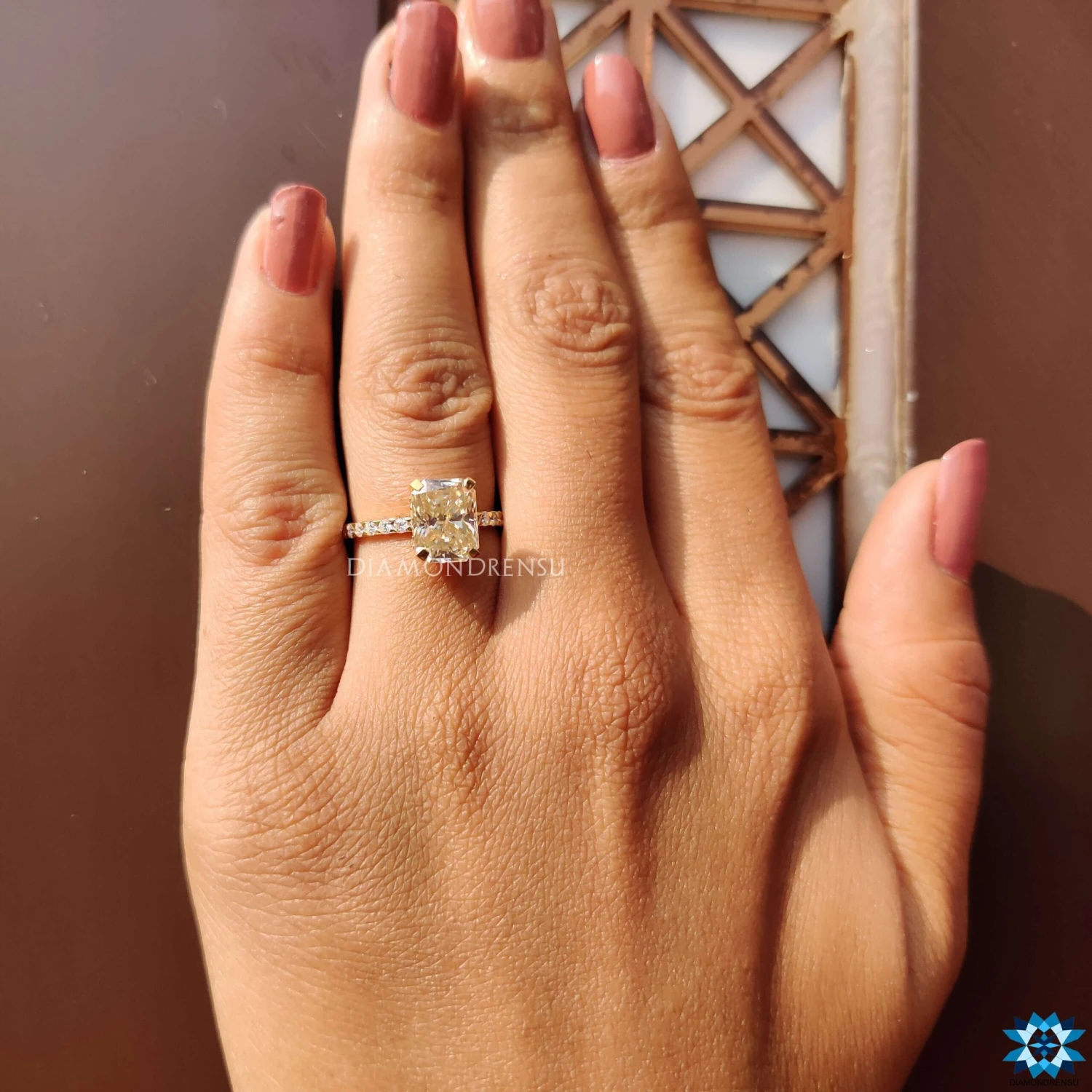 Be the first to review “2.72 TCW Radiant Cut Light Yellow Moissanite Engagement Ring” Cancel reply