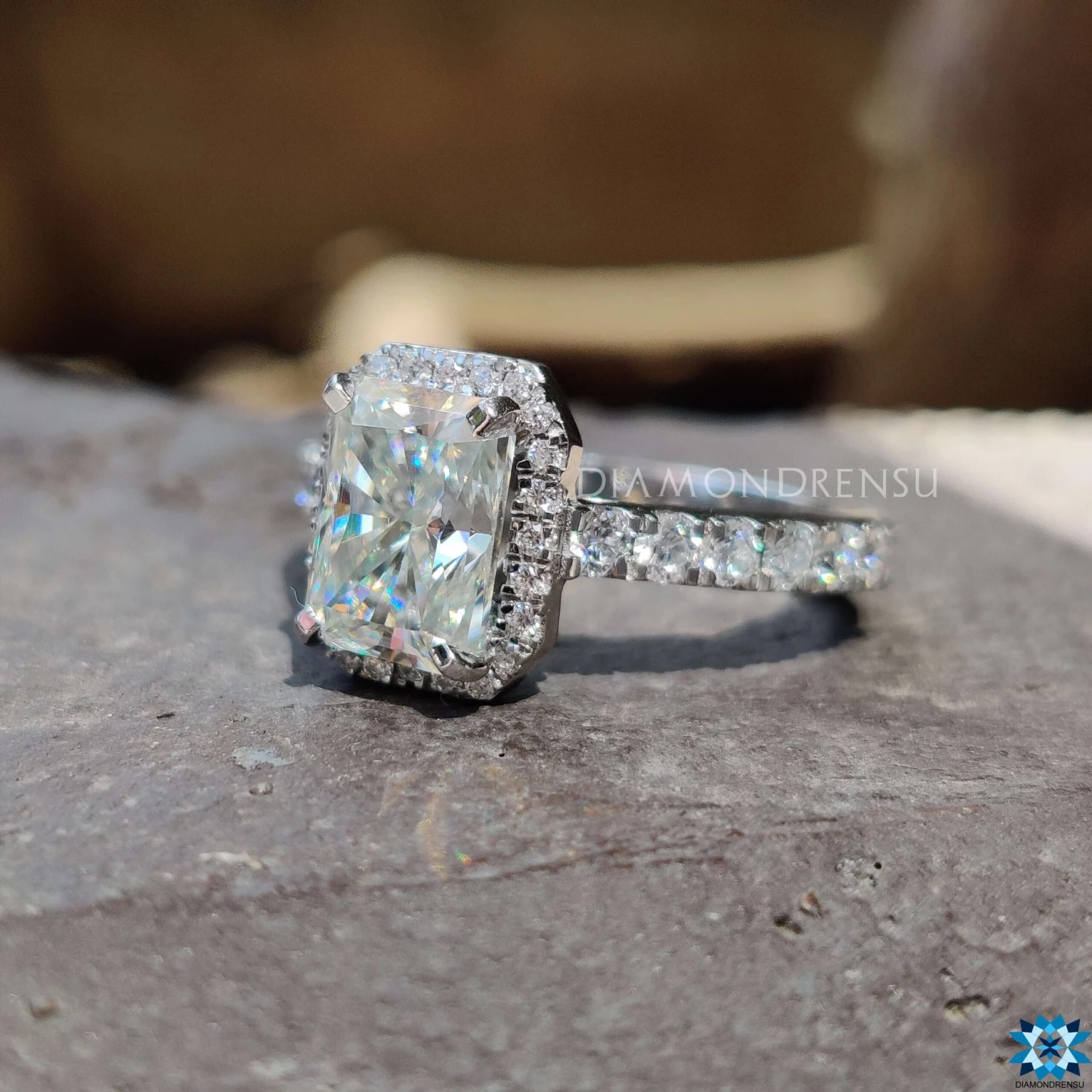 Radiant Cut Moissanite Engagement Ring The best wedding gift for Her! lovely moissanite engagement ring features a classic hidden halo of round Cut Moissanite that gives extra shine to the center radiant cut moissanite and makes someone a special wedding gift ring.