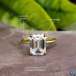 Moissanite emerald cut diamond is appropriate for settings of both simplicity and elegance. emerald cut engagement ring. Simple solitaire engagement ring with beautiful comfort fit shank gives comfortable look to your ring.