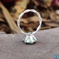 This moissanite solitaire ring is the most popular choice among today’s couples. The round brilliant cut is the most common and traditional cut for the best moissanite engagement ring. Rope twisted shank makes a beautiful statement with an elegant and timeless look forever.
