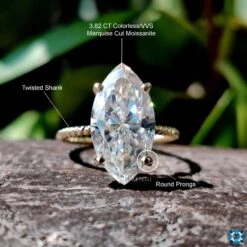 Be the first to review “3.92 TCW Marquise Moissanite Twisted Hidden Halo Engagement Ring” Cancel reply