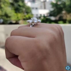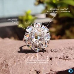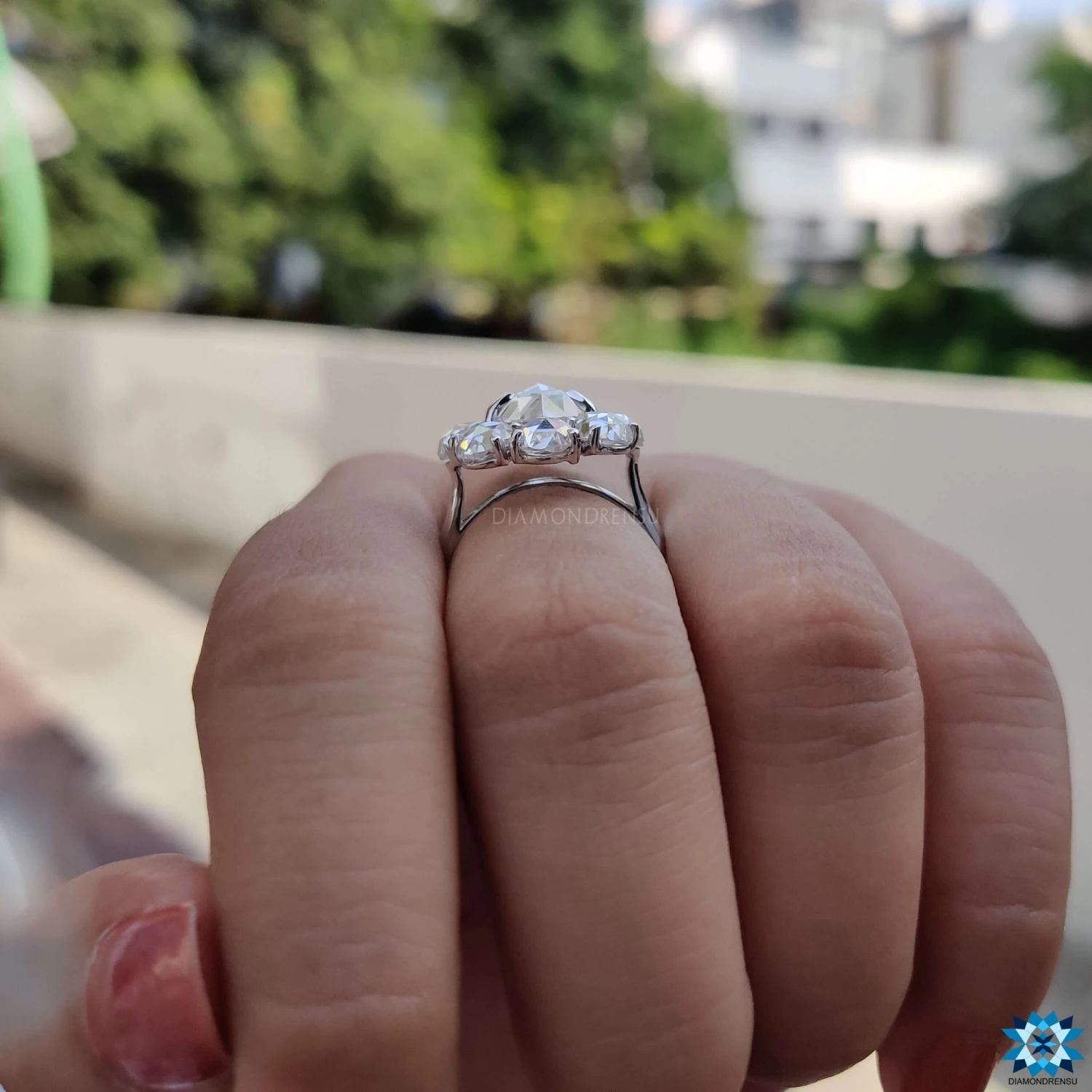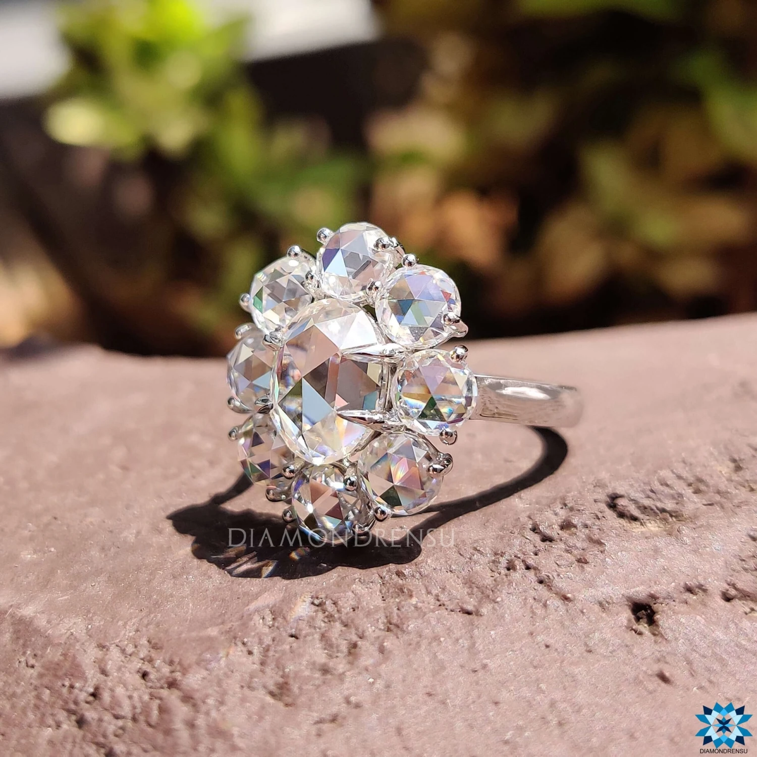 This vintage engagement ring features a center oval rose-cut looks elegant with a cluster setting of round rose cut moissanite diamond, be the perfect couple gift ring!