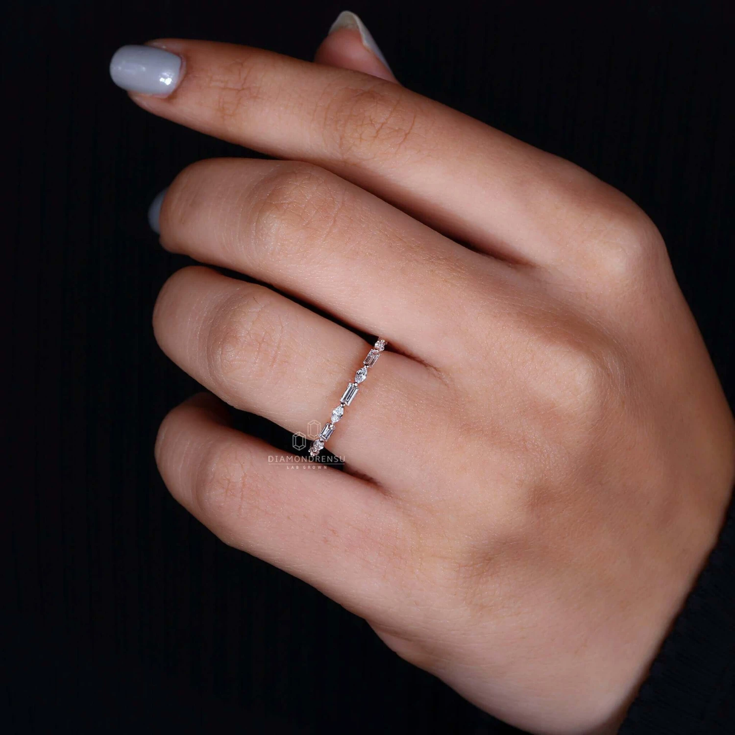 Be the first to review “Alternating Marquise And Baguette Cut Diamond Dainty Wedding Band” Cancel reply
