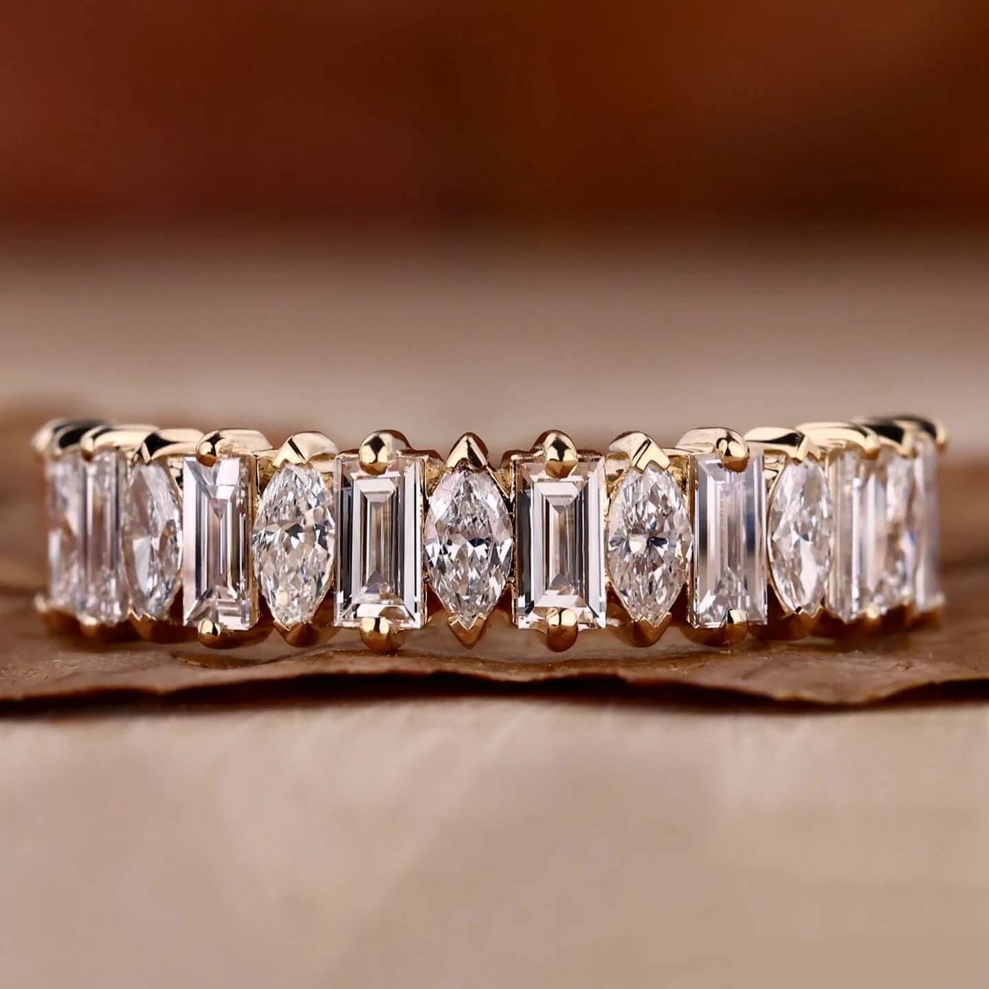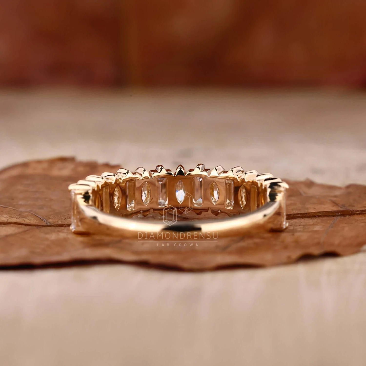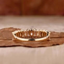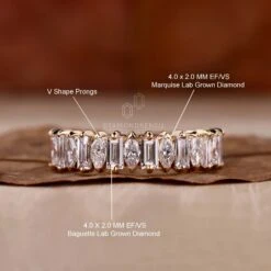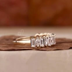 This stunning lab created diamond stackable band is crafted with baguette and marquise shaped lab created diamonds to make a captivating half eternity design. Ideal for a wedding band or an anniversary gift, this diamond band is sure to wow. The lab created diamonds guarantee consistent quality and eye-catching sparkle at a fraction of the cost.