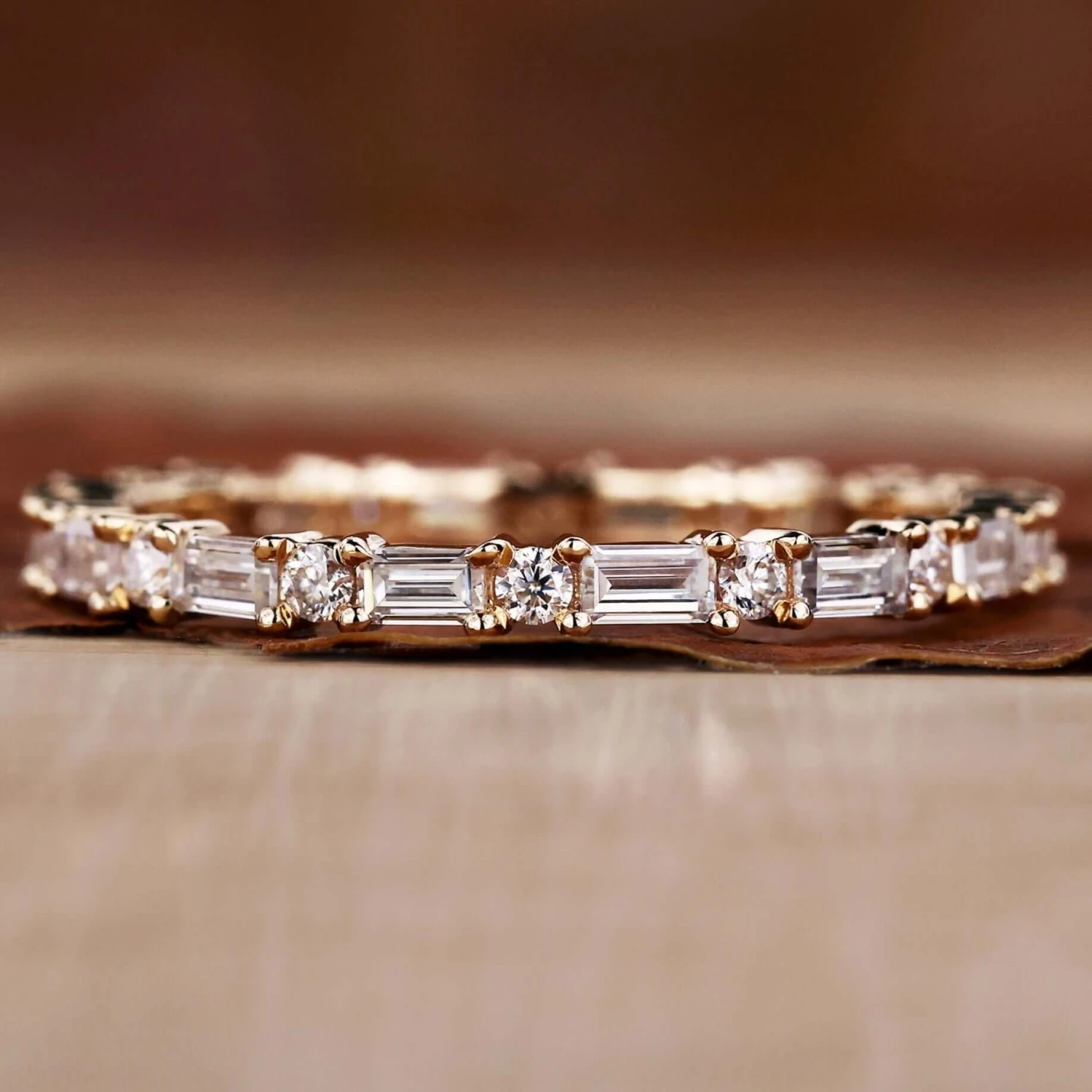 This Baguette and Round Cut Lab Grown Diamond Eternity Wedding Band features a minimalist design that pairs baguette and round cut lab-created diamonds with a timeless eternity band. Perfect for a wedding band, or as a stackable accessory. Crafted from only the finest lab-created diamonds, this sophisticated eternity band is a beautiful and ethically-made choice.