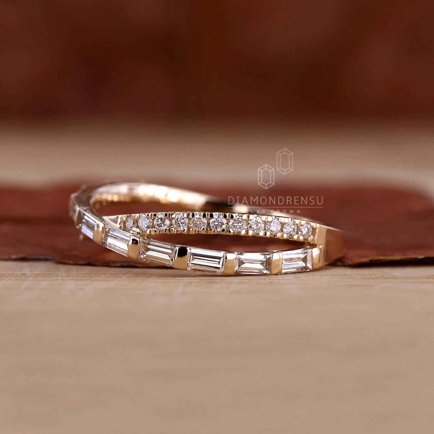 Be the first to review “Baguette And Round Cut Lab Grown Diamond Infinity Style Wedding Band” Cancel reply