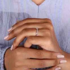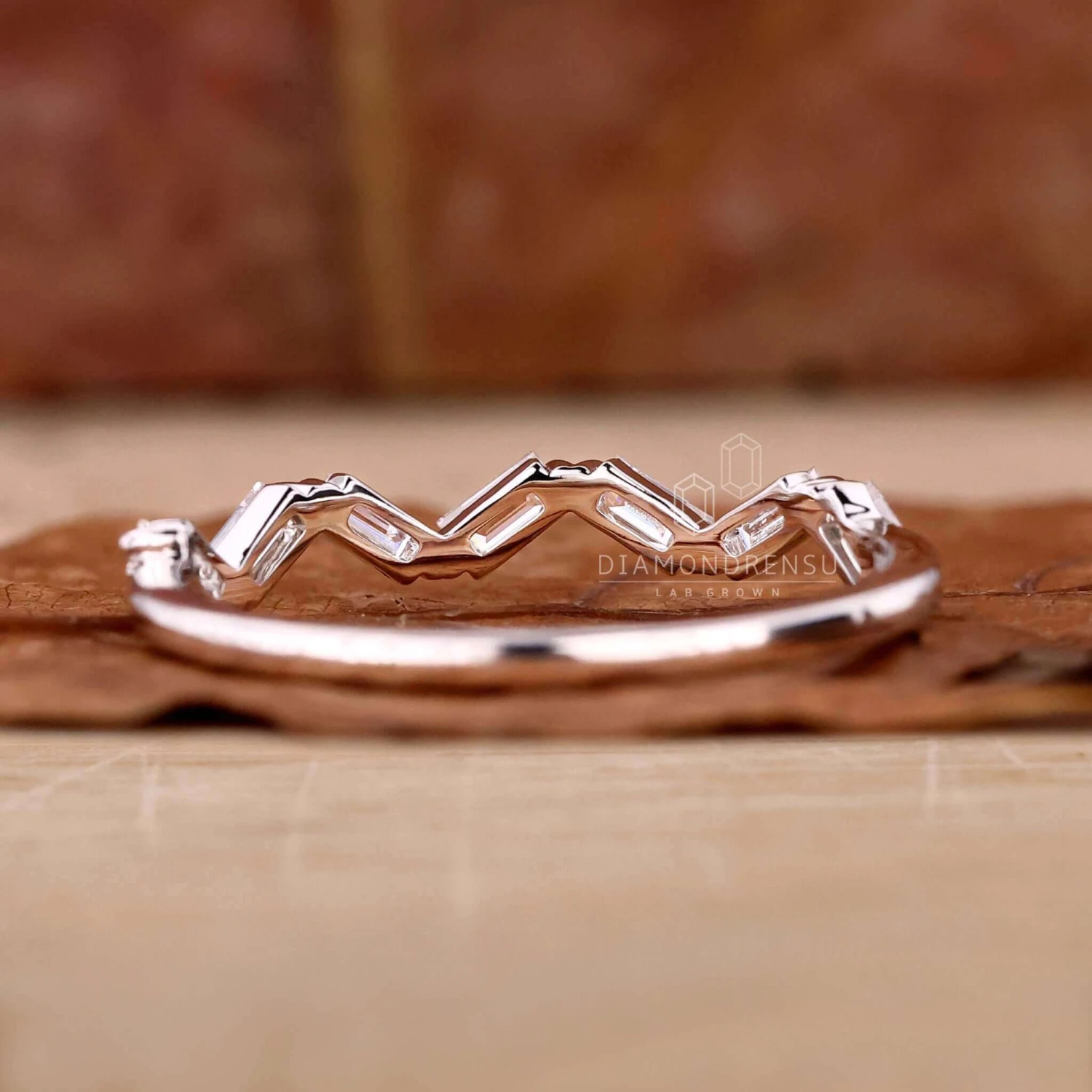 This Baguette Diamond Wedding Band is a beautiful way to symbolize your commitment. Crafted with baguette lab grown diamonds and set in a zig-zag eternity band, it will add an extra touch of sparkle to your special day. Wear it alone or pair it with the matching stackable band for an elegant and timeless look.