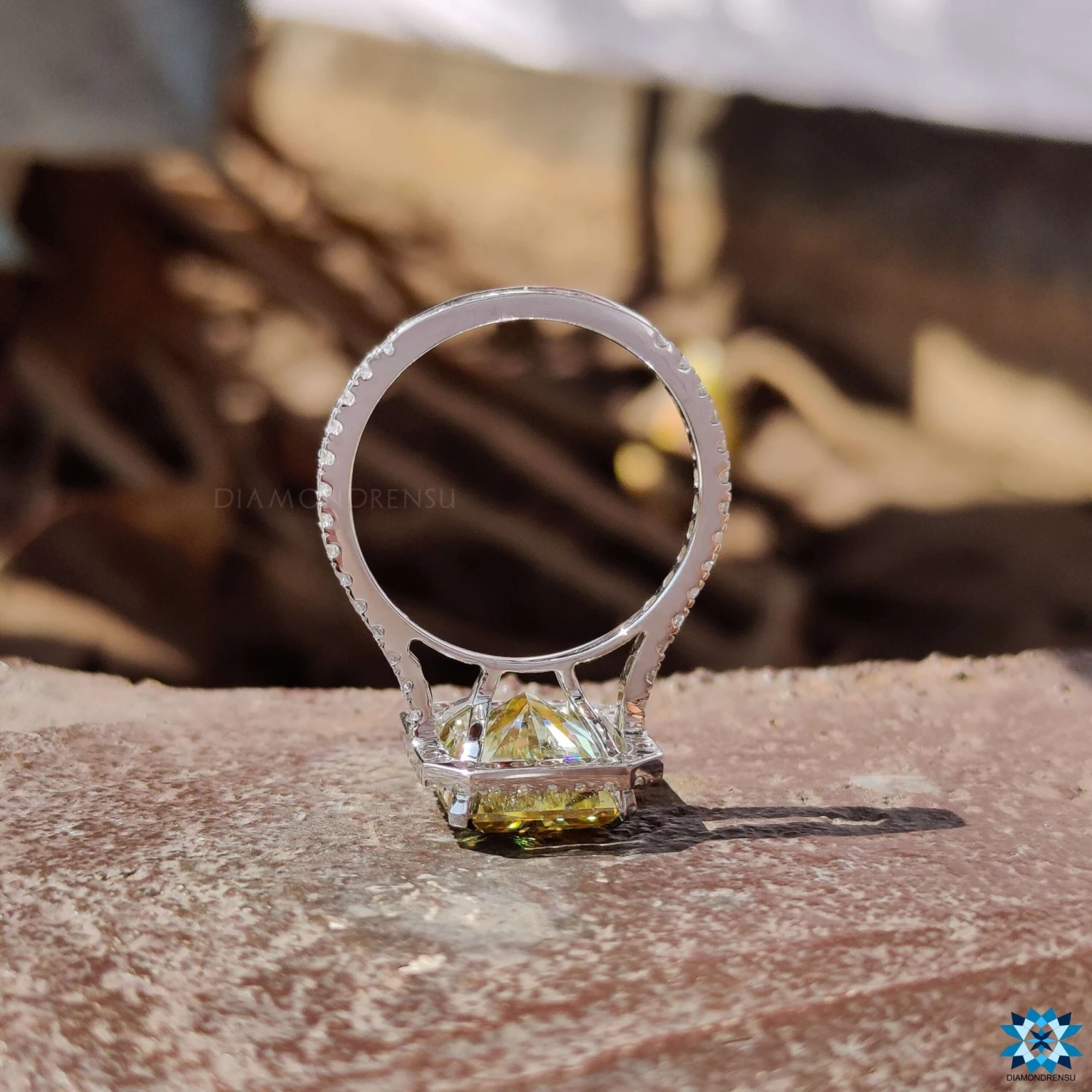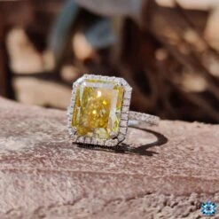 Be the first to review “Canary Yellow 7.24 TCW Radiant Cut Moissanite Halo Engagement Ring” Cancel reply