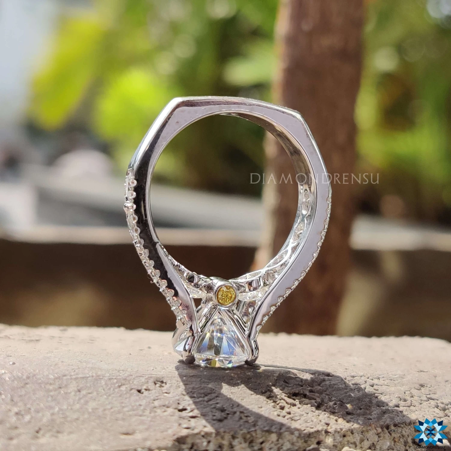 Unique Celebrity Style Moissanite Engagement Ring Looks Elegant in this Round Brilliant Cut Center Moissanite, Euro Shank, and Accented canary yellow round cut moissanite adds an extra charm to this beauty!