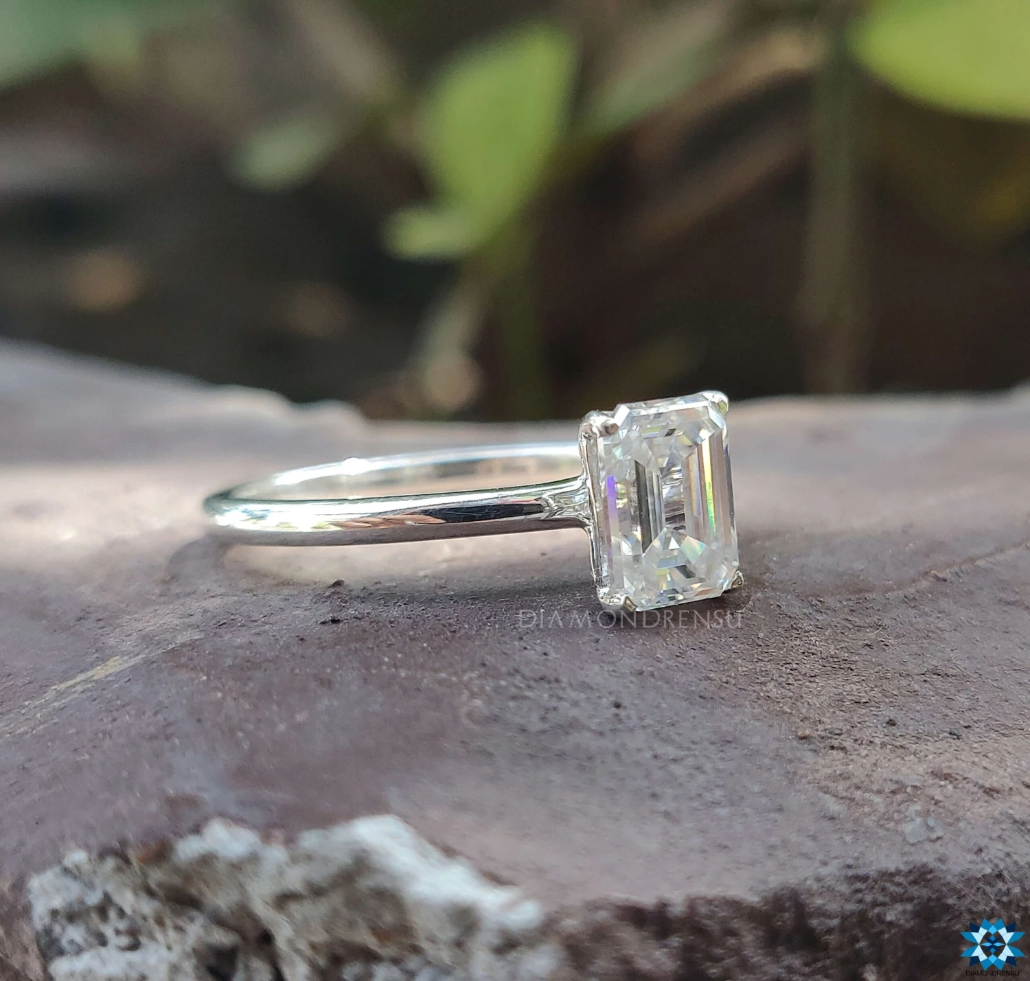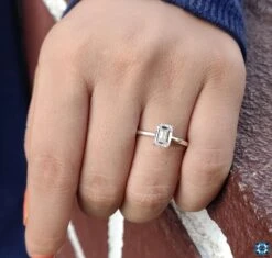 Emerald step cut is best for deep clarity and a large surface table. The step cut faceting with a large surface area makes the stone larger than other cuts with the same carat weight. Moissanite solitaire ring is the perfect gift for her. Show your love by giving this unique moissanite engagement ring and shining your special day.
