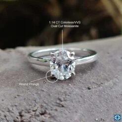 Oval cut moissanite diamond would be the perfect shape for your engagement. This is the best cut which covers a larger surface area on a slender finger and appears much larger. Oval cut is the best choice for a unique yet classic moissanite solitaire ring.