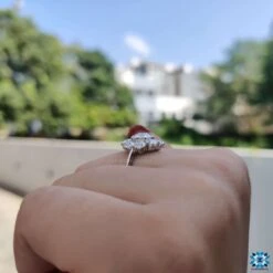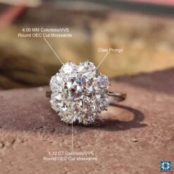 Carefully crafted this moissanite halo engagement ring featured a cluster setting of little Round Old European Cut Moissanite, which gives unique shine and sparkle to the center Old European Cut Moissanite Diamond