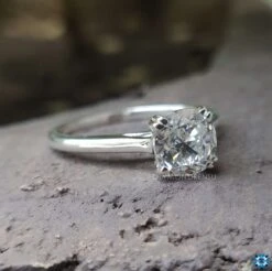 This beautiful moissanite solitaire ring features beautiful and sparkling colorless cushion divine moissanite. Amazing double claw prongs safely captured by double claw progs give a supportable look to the moissanite engagement ring. A cathedral setting is one elegant and classic display to set center stone perfectly and give support to the center stone. The cathedral setting gives a stylish touch and character while still keeping it simple.