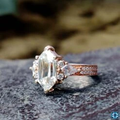 Vintage style hexagon criss cut moissanite engagement ring is the perfect choice for any of your occasions. Hexagon criss cut moissanite has facets like a criss cut moissanite and resembles an elongated hexagon cut. This is the best combination of a hexagonal cut and a criss cut moissanite diamond.