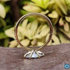 This affordable moissanite engagement ring comes with a center shine of marquise cut. In this ring, the center stone is captured by four prongs, and it is set east-to-west position on the shank. Furthermore, the little charm of the round cut covers half of the band and gives a unique shine to the listed engagement ring. The listed design contains a center stone set horizontally you can customize it to your custom taste.
