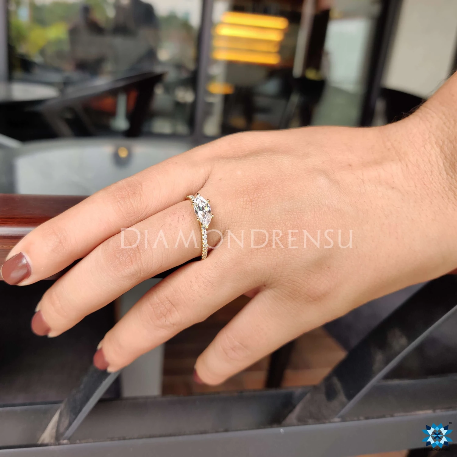 Everyone wants a unique moissanite engagement ring will be their engagment ring, which will be the best choice for her. If you uniquely want marquise beauty, set your stone horizontally on the shank, which would be the best for you. Celebrate your special moment with the presence of this dazzling beauty of solitaire.