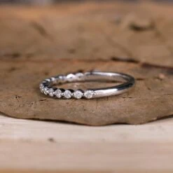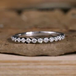The listed half eternity wedding band comes with the beauty of a round brilliant cut diamond wrapped around half of the shank. Additionally, this band includes a floating bubble set that perfectly catches all the stones. This floating bubble setting adds a classic look to the band. The elegant diamond eternity wedding bands are a perfect ring in the