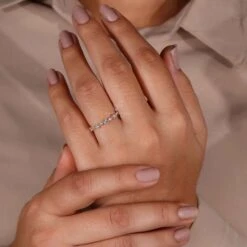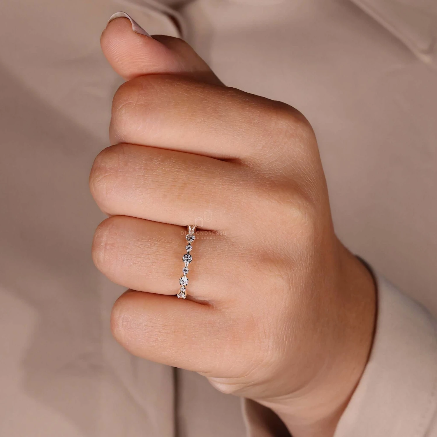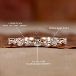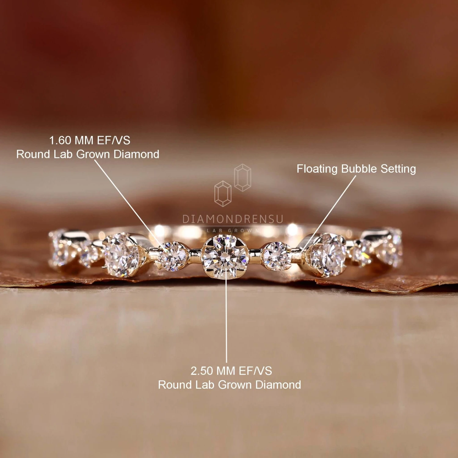 The charming round cut lab grown diamond floating bubble wedding band for her. A beautiful lab grown diamond half eternity band is the best gift for your eternal love. Everyone’s eyes can’t stop watching the sparkling beauty of this lab diamond ring.