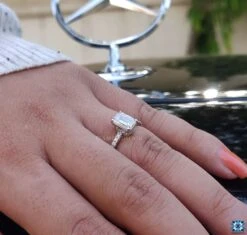 Moissanite emerald cut diamond is appropriate for settings of both simplicities. This particular cut is very common for moissanite engagement rings. It is a perfect and popular choice for a stand-alone in any setting.