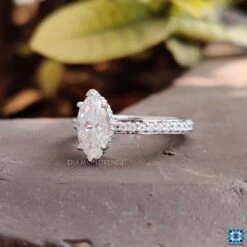 Marquise cut diamond has one of the largest crown surface areas of any shape. This hidden halo engagement ring has a timeless beauty and luxury look that is perfect for any occasion. Marquise cut is the most traditional and popular choice for making a beat and beautiful moissanite jewelry.Â