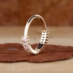 Our diamond half eternity band is a perfect blend of modern and classic charm. The baguette diamonds, known for their unique cut, line up perfect, creating a brilliant display of light. It’s not just an accessory; it’s a statement piece that’s sure to catch every eye.