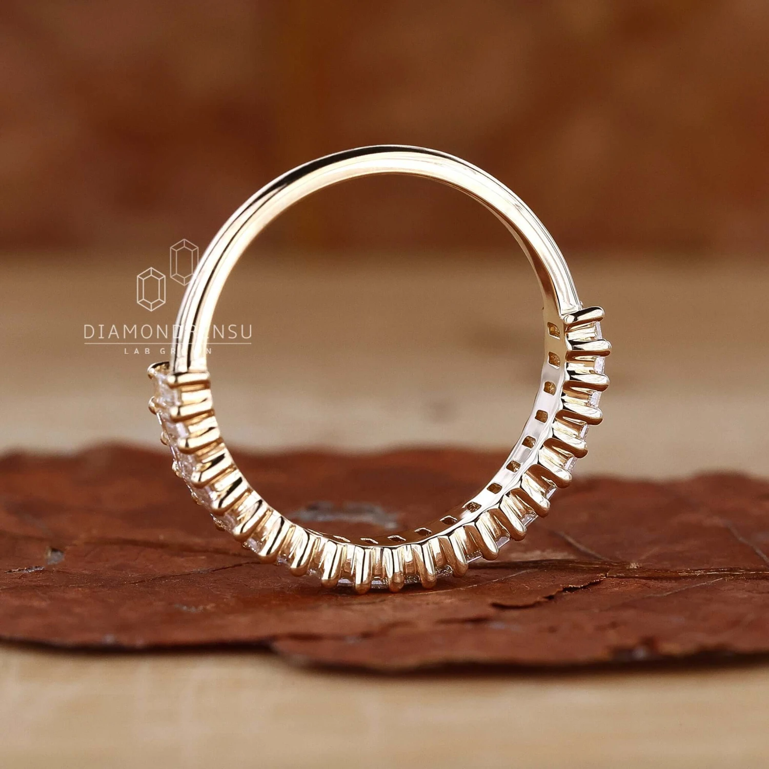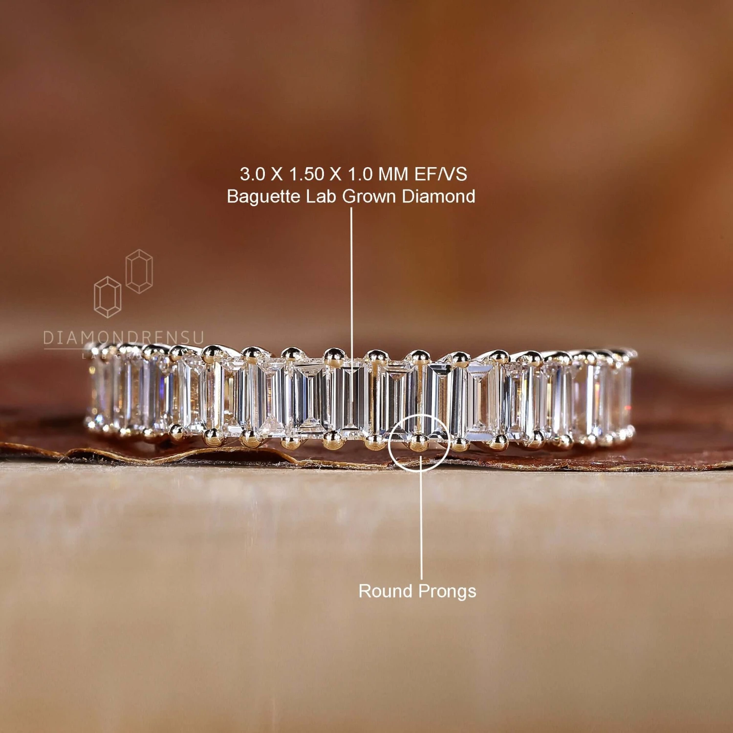 Discover the sheer Style of our Baguette Diamond Eternity Band. The jeweler designed this lab grown diamond wedding band, a true symbol of endless love, not just as jewelry.; it represents a life time promise wrapped in sparkling beauty. Carefully selected, each diamond in this lab diamond half eternity band represent unmatched brilliance and quality.
