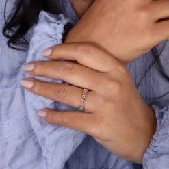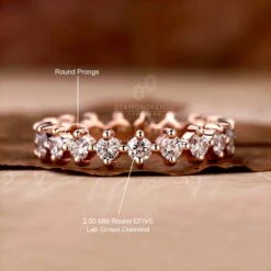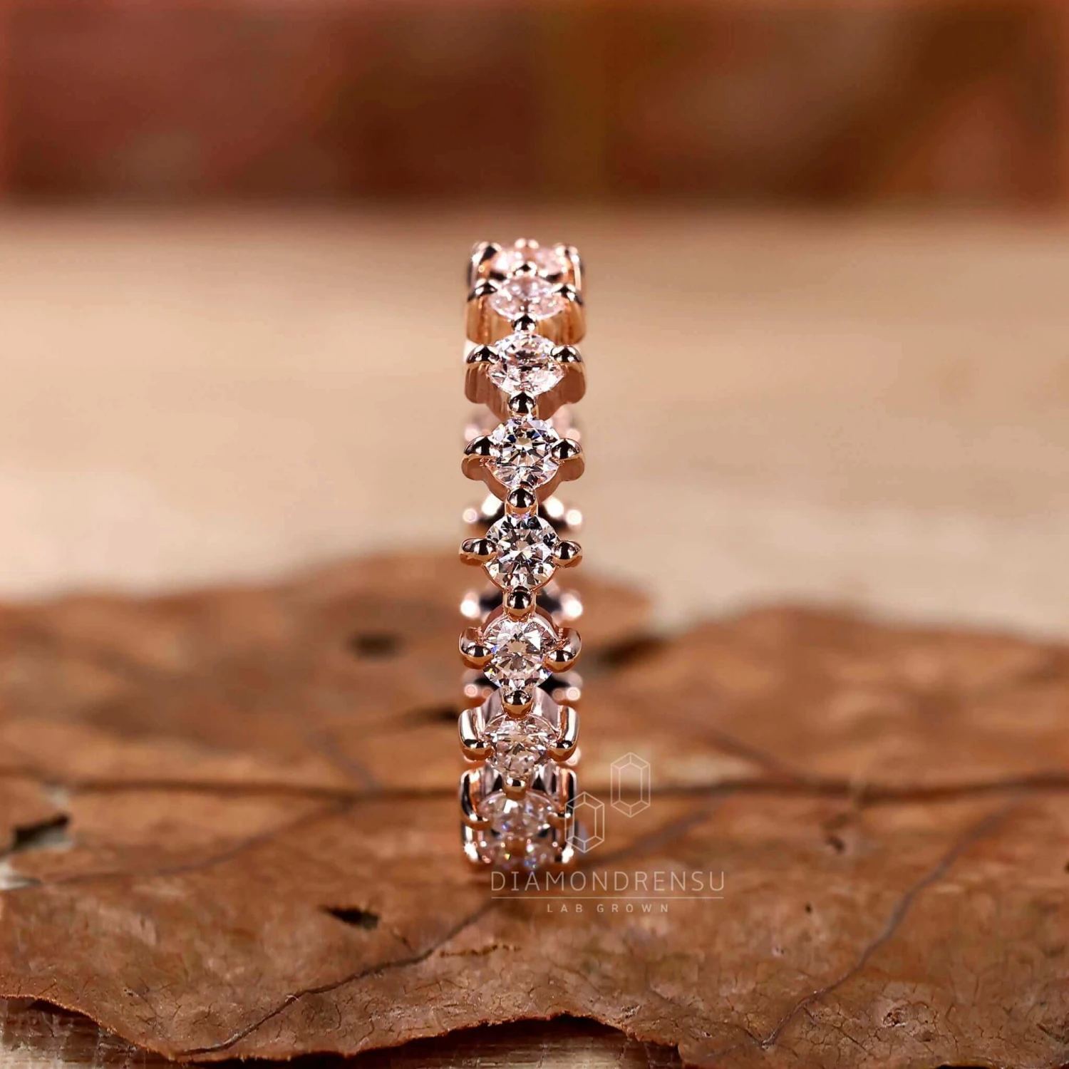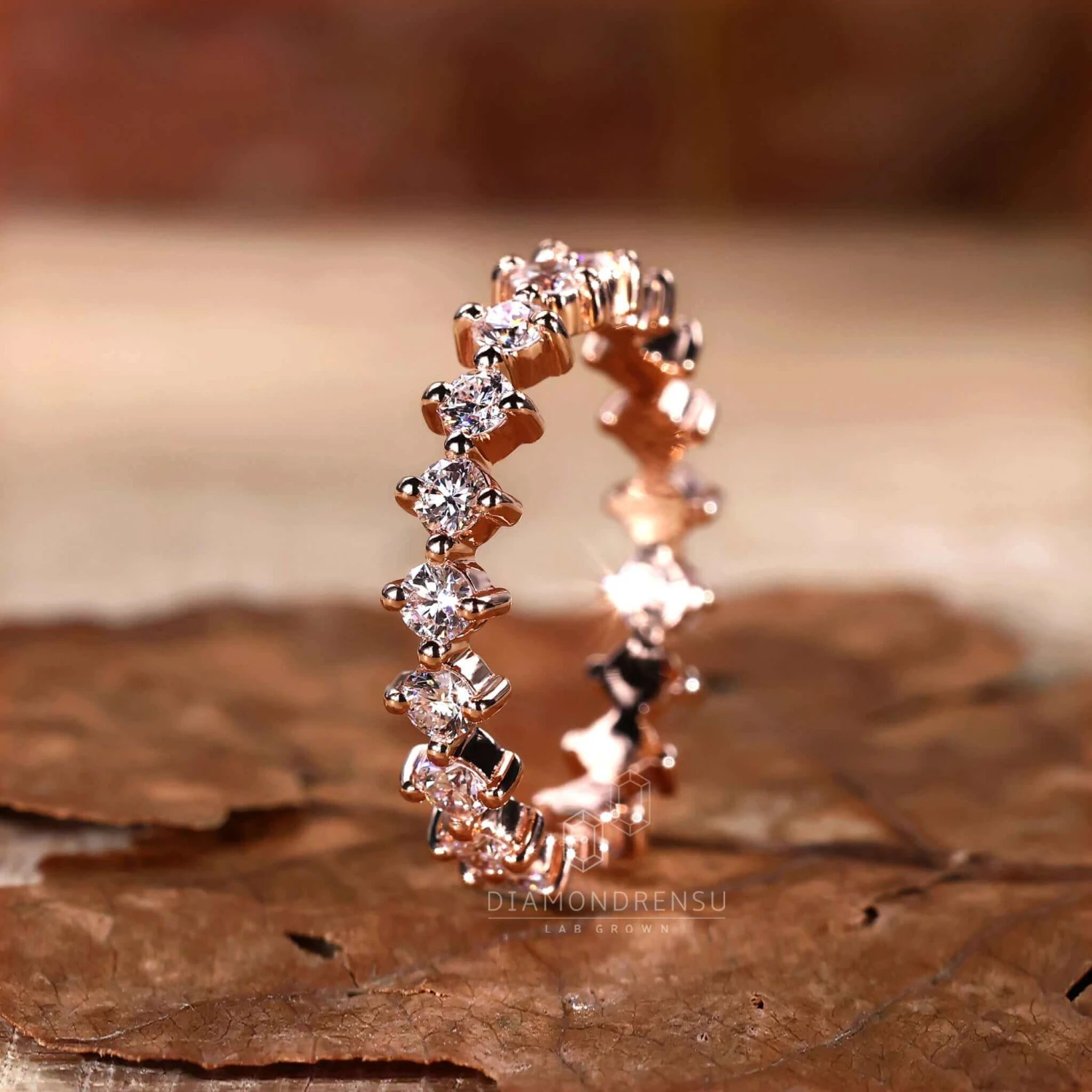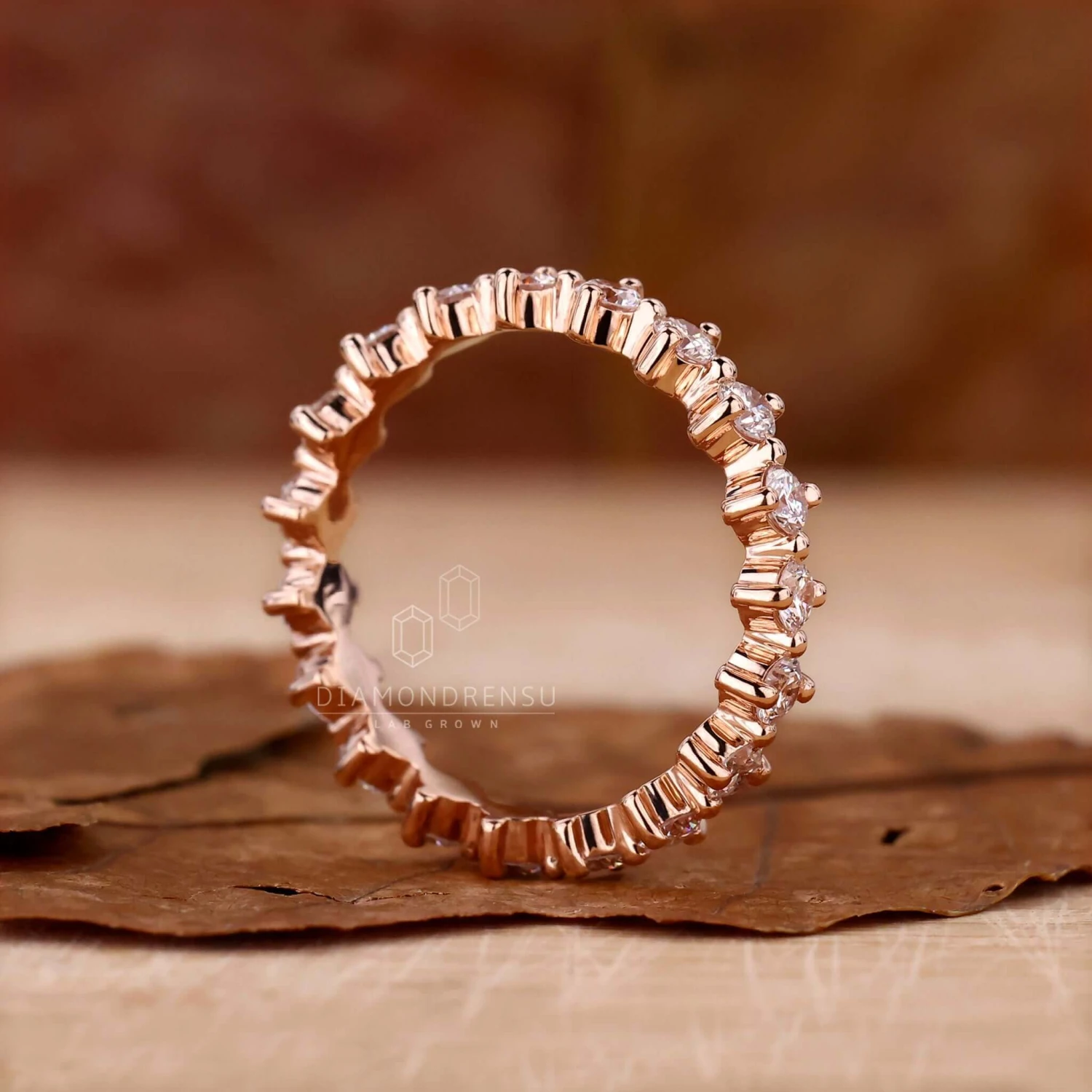 Any occasion or function would benefit from a round brilliant cut lab grown diamond floating bubble wedding band. A beautiful lab grown diamond half eternity band is the best gift for your eternal love. Everyone’s eyes can’t stop watching the sparkling beauty of this lab diamond ring.
