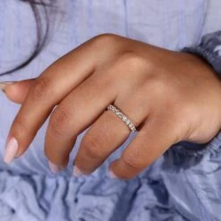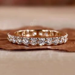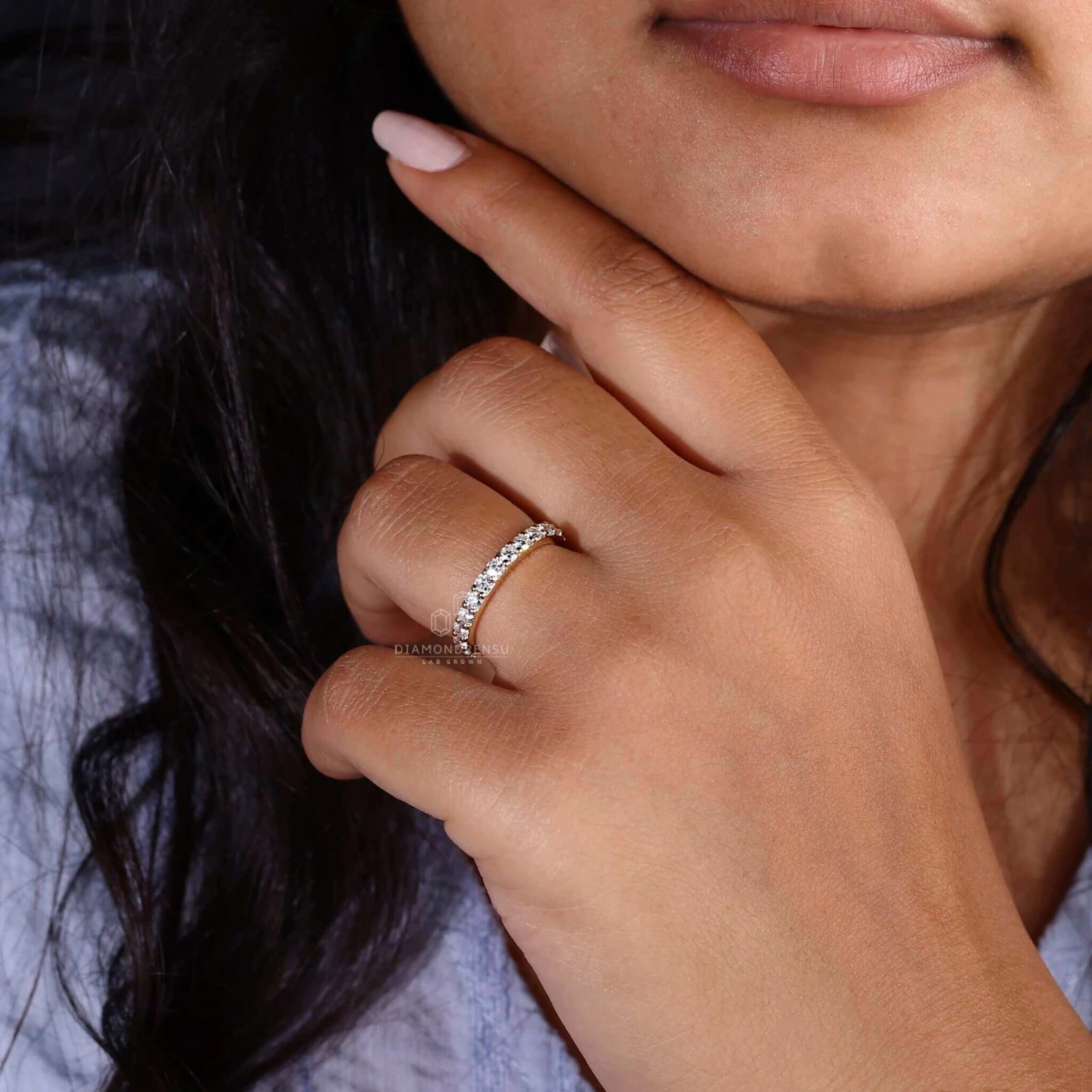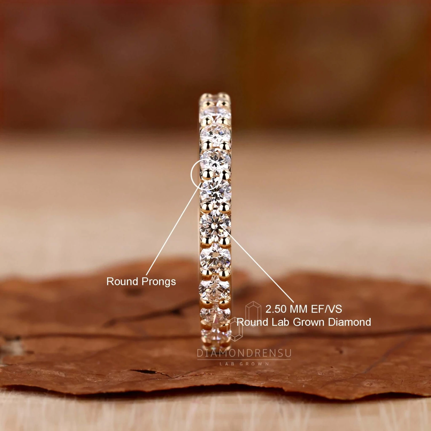 Enhance your wedding set with the Round Lab Created Diamond Eternity Wedding Band for Women. This matching stackable band features a 2.50mm round brilliant cut man-made diamond, expertly crafted by Diamondrensu. With its lab-grown diamond and elegant design, this band perfectly complements your engagement ring, symbolizing everlasting love and unity. Elevate your bridal look with the exquisite beauty of this handcrafted piece.