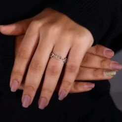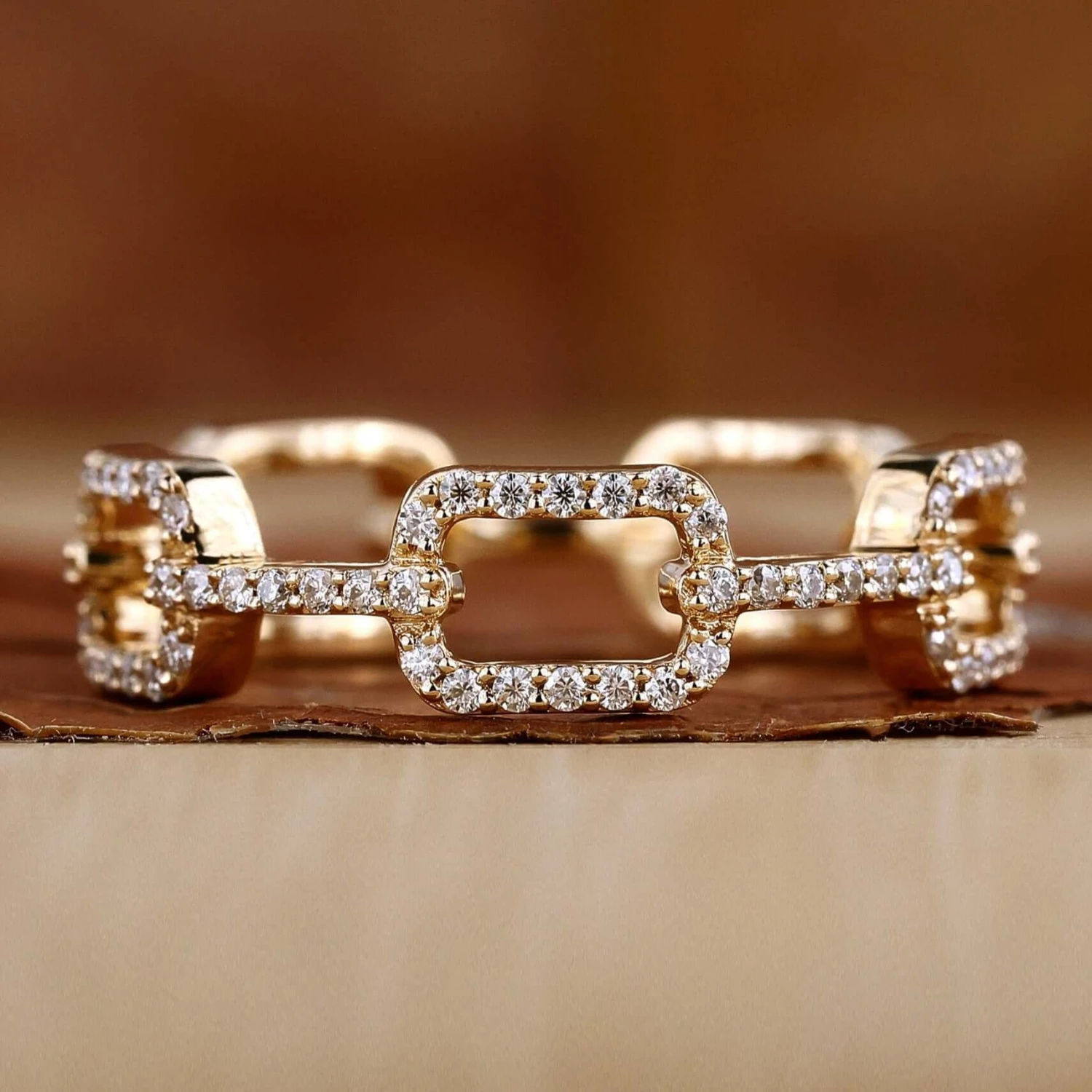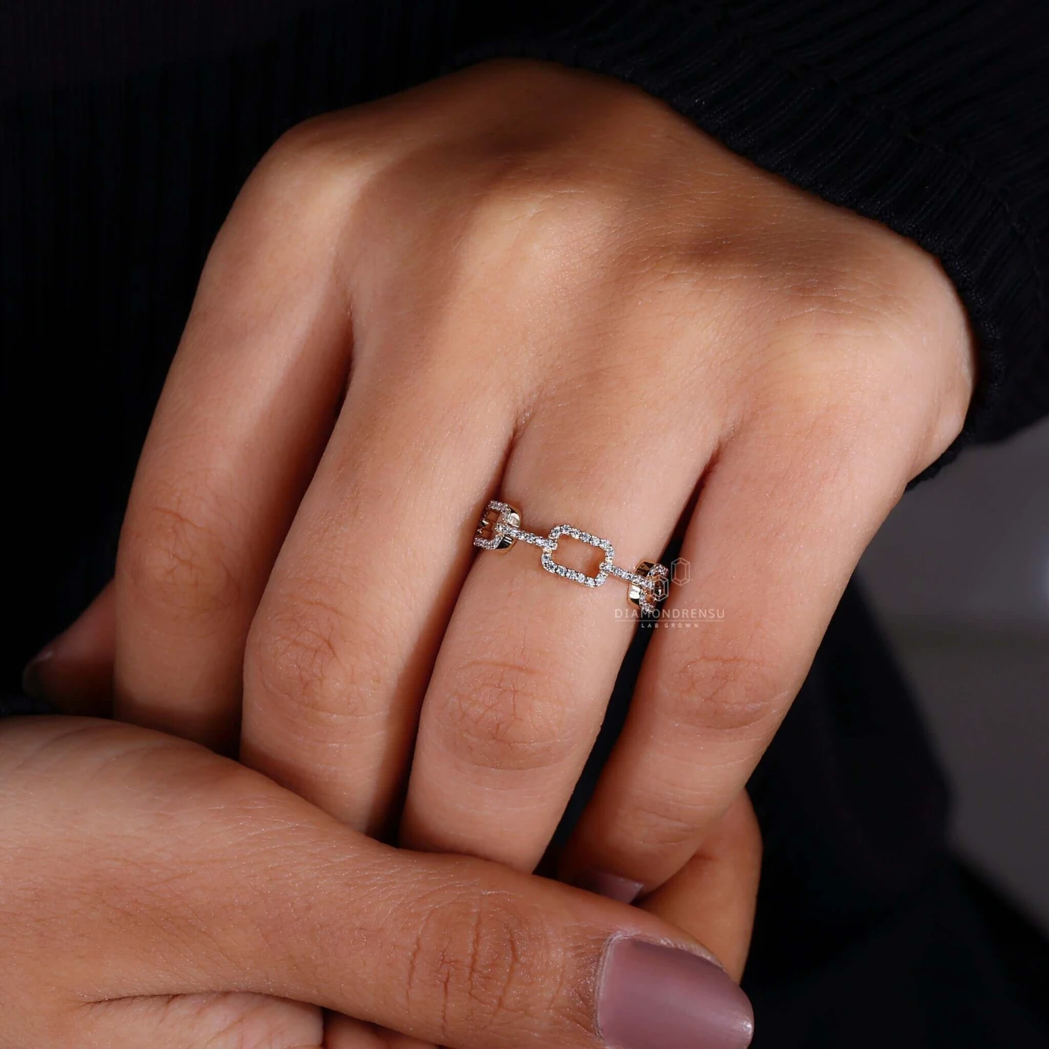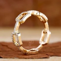 This Round Lab Grown Diamond Unique Interlinking Eternity Wedding Band is the perfect choice for a special occasion. Featuring a round lab grown diamond band interlinking pave band. This elegant chain link ring created and beautiful everlasting look. Select this diamond wedding band to enhance your jewelry collection.