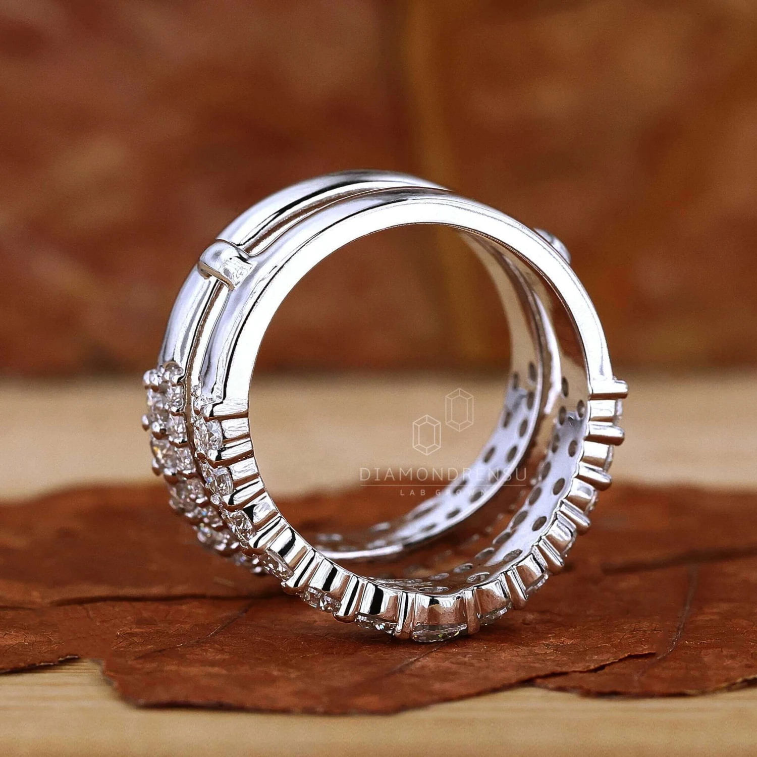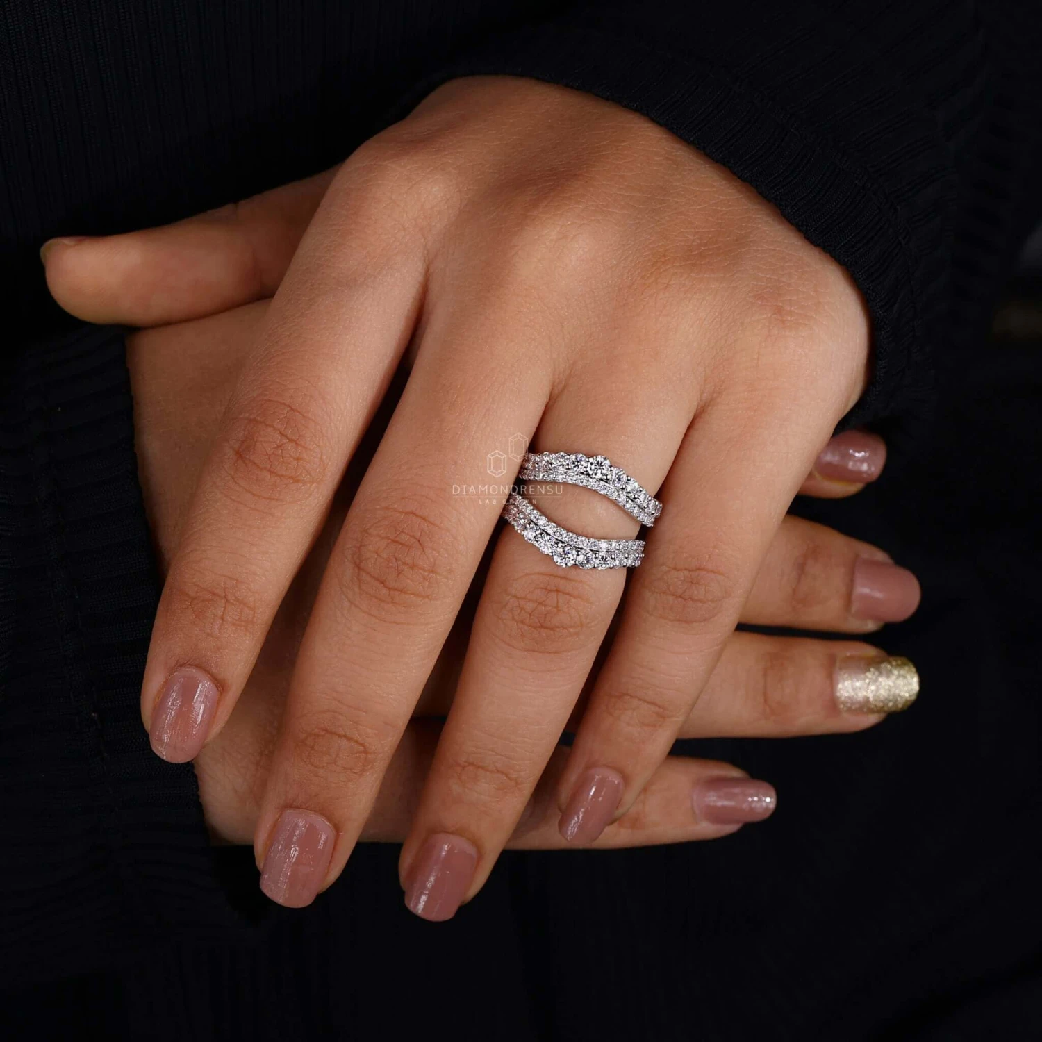 Welcome a sparkle to your engagement ring with this Lab Grown Diamond Enhancer. The guard wrap band and diamond ring enhancer provide a highly polished and luxurious look to any diamond ring. Crafted with lab-grown diamond, the guard for the ring is sure to last for generations to come. Make this diamond wedding band the perfect addition to your engagement ring. Perfect for elevating the look of your existing ring in an ethical way.