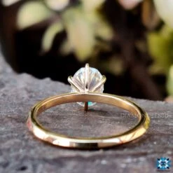 This beautiful oval engagement ring features a center eye-catching oval cut moissanite diamond. The six prongs perfectly catch the center beauty of oval moissanite and give traditional look to your moissanite ring. The knife-edge shank features a sharp edge that goes around the outer edge of the shank of this moissanite engagement ring.